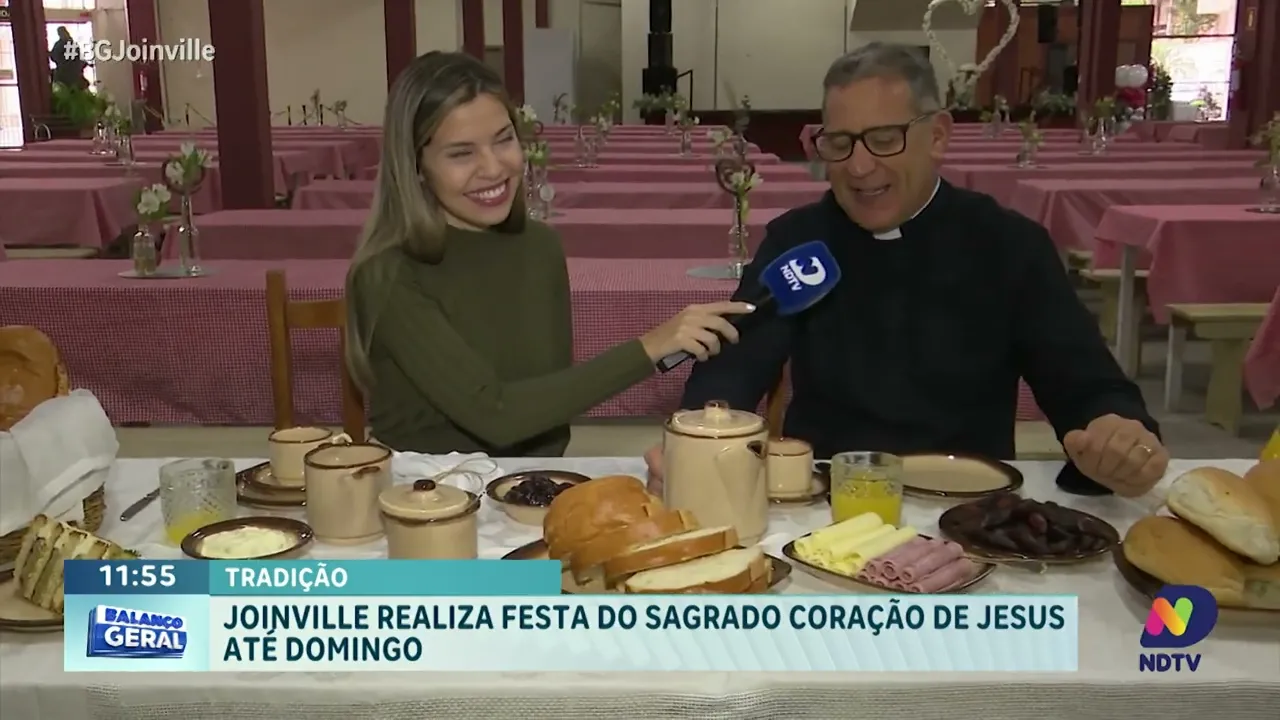 A tradicional Festa do Sagrado Coração de Jesus começou hoje em Joinville e segue até domingo, reunindo moradores e visitantes para celebrar a cultura e a fé da região. O evento, um dos mais tradicionais da cidade, inclui diversas atrações culturais e um café especial, que promete encantar o público. A repórter Isabela Corrêa acompanha de perto as atividades e traz os detalhes para quem quer aproveitar essa celebração histórica em Joinville.