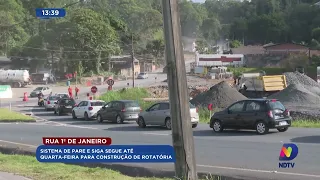 Rua 1° de Janeiro: sistema de pare e siga segue até quarta-feira para construção de rotatória