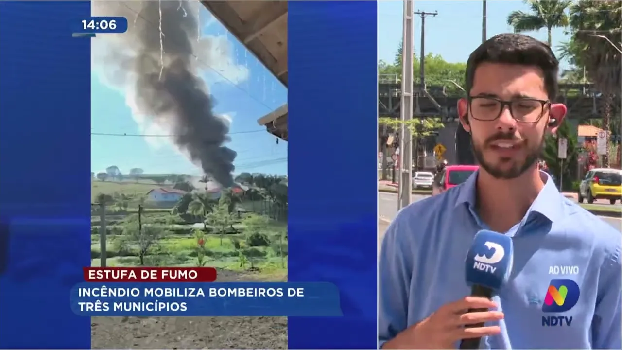 Estufa de fumo: incêndio mobiliza bombeiros de três municípios