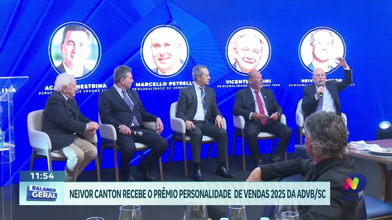 Neivor Canton, diretor-presidente da Aurora Coop, recebeu o prêmio ADVB Personalidade de Vendas 2025 em cerimônia exclusiva realizada ontem à noite. O evento reuniu empresários, autoridades e lideranças para homenagear os principais destaques do setor. A premiação reconhece a contribuição significativa de Neivor para o desenvolvimento das vendas e do agronegócio em Santa Catarina e no Brasil.
