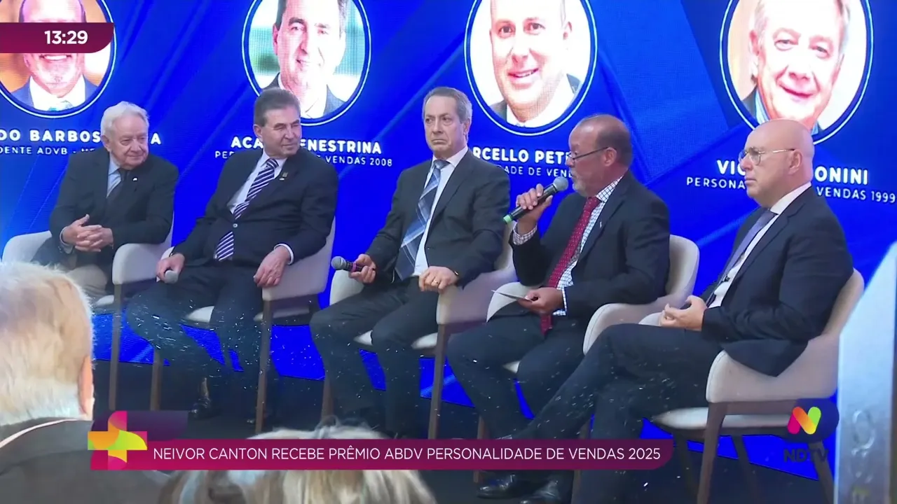 Neivor Canton, diretor-presidente da Aurora Coop, foi agraciado com o prêmio ADVB Personalidade de Vendas 2025. A cerimônia aconteceu ontem à noite no Hotel Kindermann, reunindo empresários, autoridades e lideranças em uma celebração especial. A repórter Milena Bender conversou com o homenageado, que falou sobre a importância do reconhecimento e os desafios à frente da cooperativa.