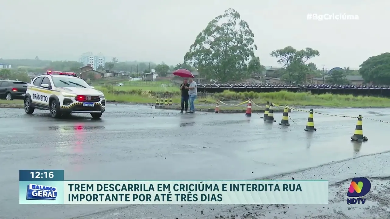 O descarrilamento de um trem registrado durante a madrugada em Criciúma provoca transtornos e deve manter um importante acesso da cidade interditado por até três dias. A ocorrência mobilizou equipes de segurança e manutenção logo nas primeiras horas da manhã, que trabalham para avaliar os danos e liberar a passagem com segurança. A interrupção afeta diretamente o fluxo de veículos e o deslocamento diário de moradores e trabalhadores da região. O repórter Marcus Matildes traz novos detalhes sobre o acidente, os motivos que podem ter levado ao descarrilamento e como as equipes responsáveis estão atuando para restabelecer a normalidade.