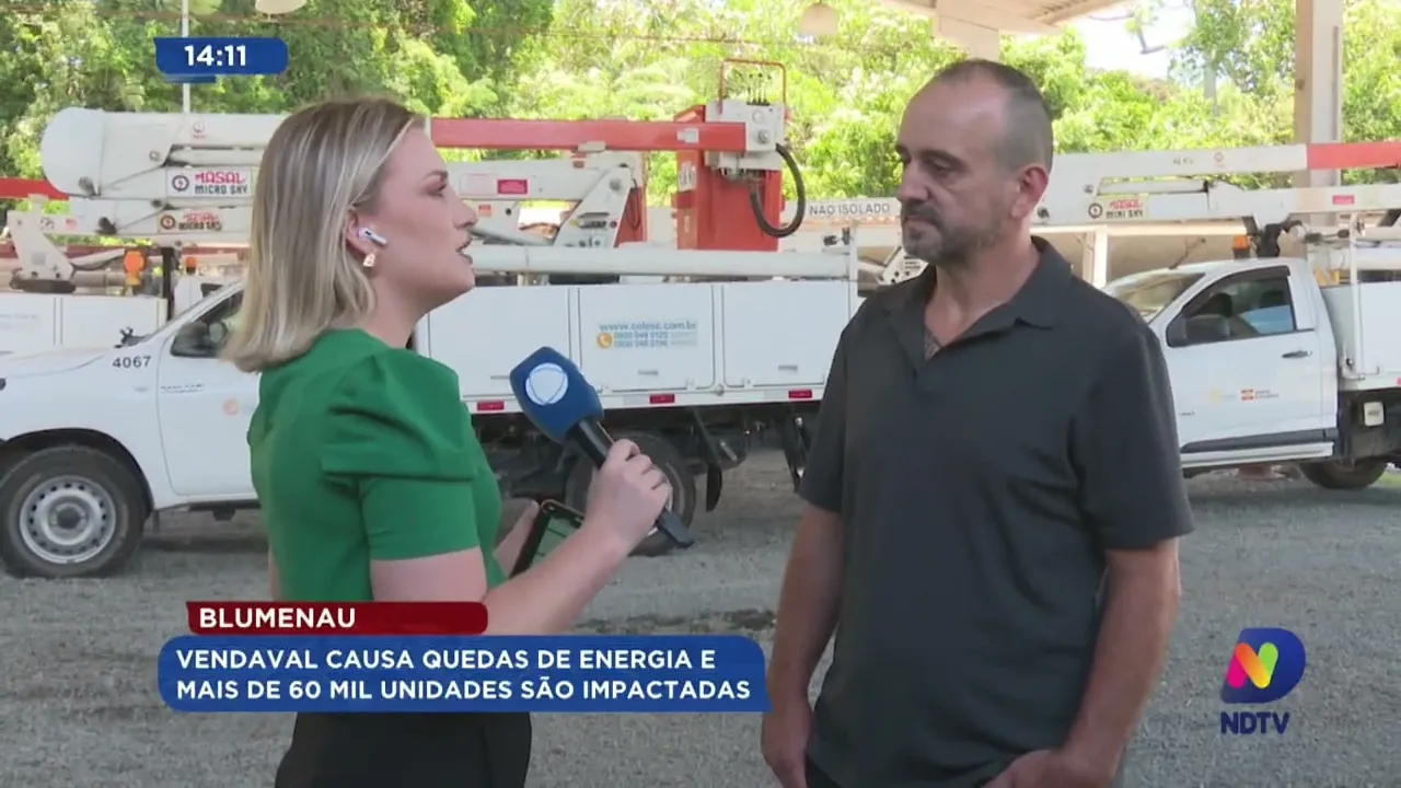 Nesta quarta-feira (10), mais de 60 mil unidades tiveram o fornecimento de energia elétrica interrompido em Blumenau devido ao vendaval.